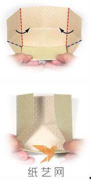 4. 折边:将四个边分别向中心线对折,使得每个边都紧贴中心线。